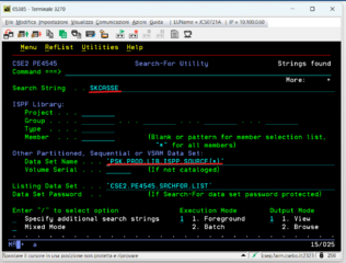 Schermata ricerca stringa in data set